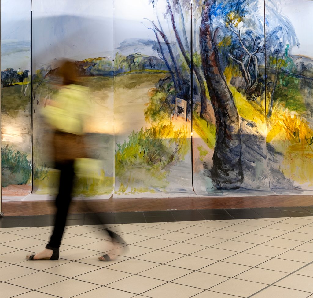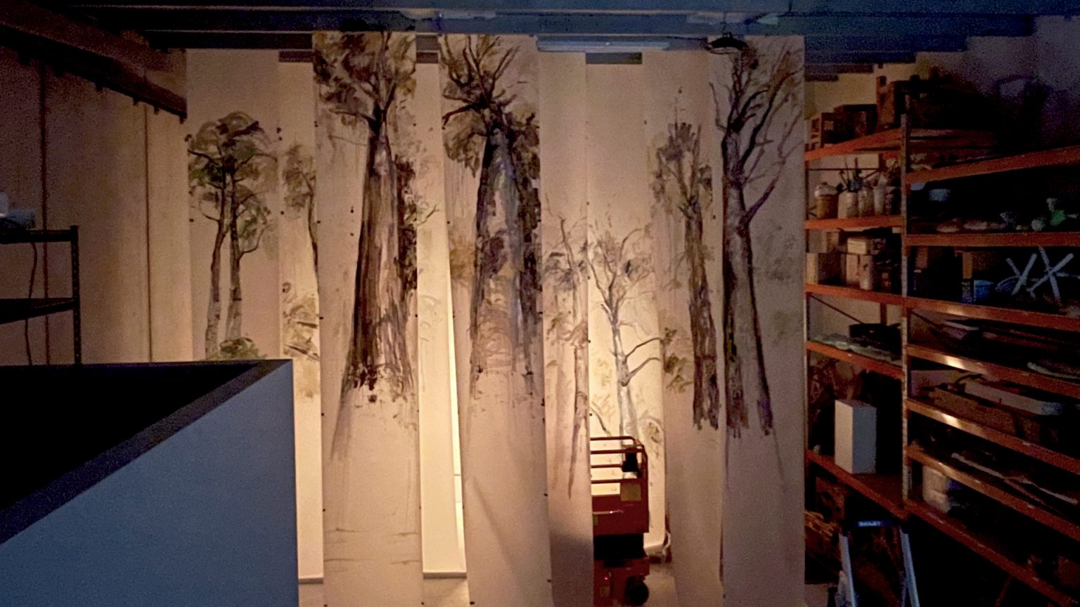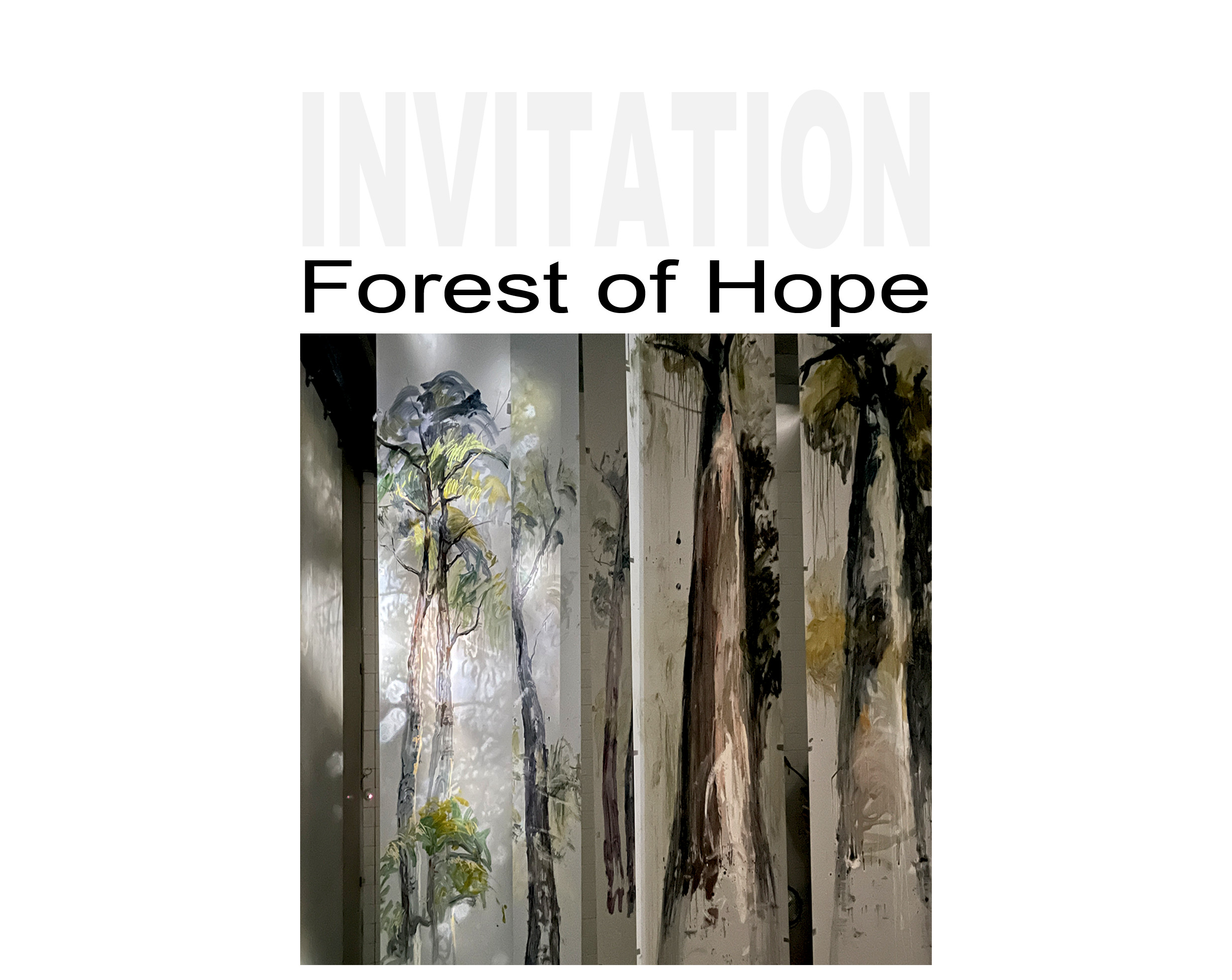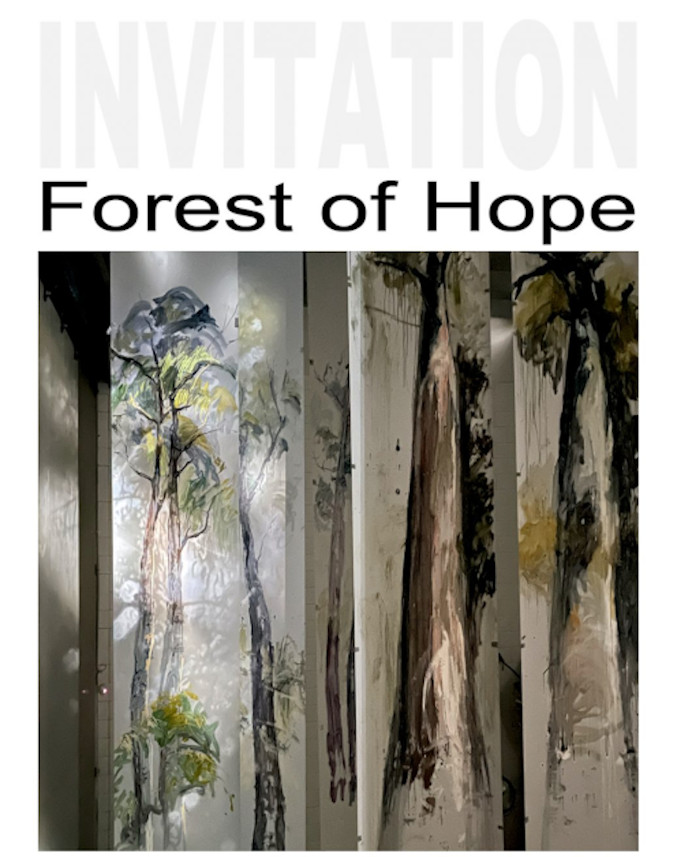 Forest of Hope is an immersive art and sound installation, featuring transparent floor to ceiling paintings by Anne Bennett, projections and environmental sound recordings by Jutta Pryor, and original musical compositions by bass artist Scott Dunbabin and flautist Megan Kenny.